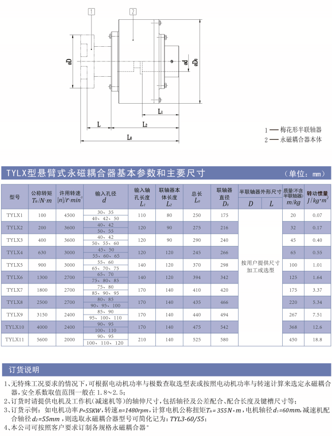 ■TYLX型永磁耦合聯軸(保護)器為懸臂式,其一端為梅花形半聯軸器,另一端為軸孔;